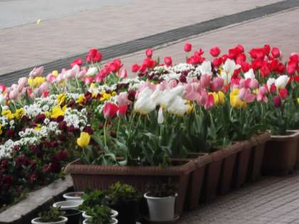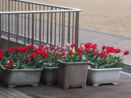 今朝は、生徒玄関前のチューリップが横に大きくなぎ倒されるくらいの強風でした。