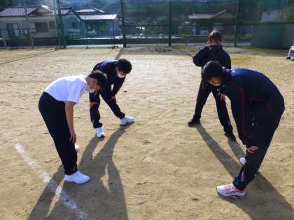 陸上競技部 公開日 2021/04/15 更新日 2021/04/15 日々の活動から 4月15日(木) 今日は体験入部で新入生が3人も体験に来てくれました。 準備運動から100m走のタイムトライアルまでしました。