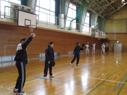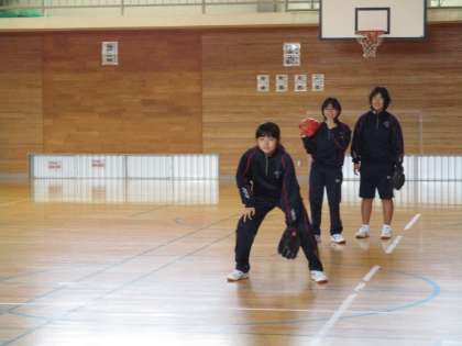 休日部活動 ソフトボール部 公開日 2021/04/17 更新日 2021/04/17 日々の活動から 4月17日(土) 本日のソフトボール部の活動の様子です。 雨天のため、体育館で練習を行いました。 グラウンドと体育館ではボールの跳ね方が異なるため、バウンドに合わせて捕球をすることに苦戦している様子でした。