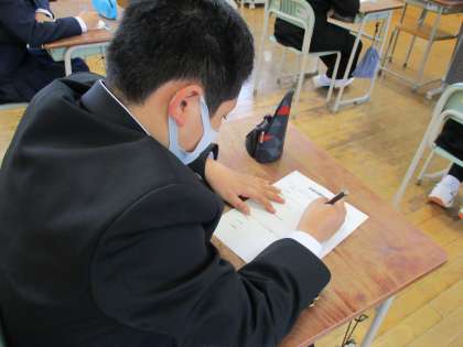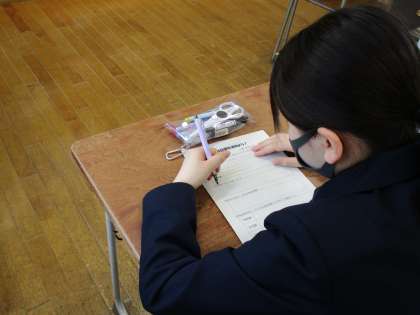 1年生は、学級目標づくりのために各自で「どのようなクラスにしたいか」を考え、ワークシートに記入していました。