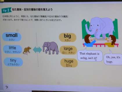 3年生の英語は、「大きい」という意味の単語が複数あることを学びました。