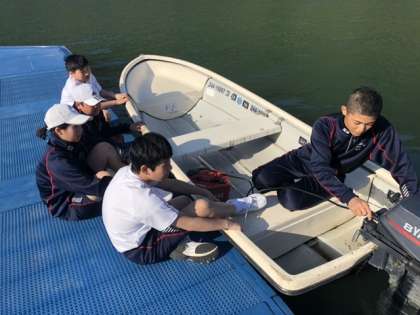 ボート部 公開日 2021/04/21 更新日 2021/04/21 日々の活動から 4月21日(水) ボート部の活動の様子です。 始めに3年生から1年生へモーターボートのエンジンの付け方のレクチャーを行いました。 1年生は徐々に恐怖心もなくなり、スムーズに漕ぐことができるようになってきました。 2・3年生はボートにチューブをつけて、負荷をかけたトレーニングを行いました。 2・3年生は高い意識でトレーニングに取り組んでいました。