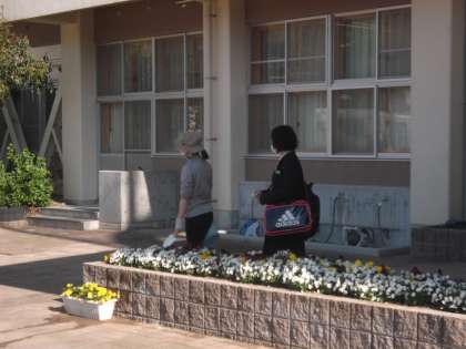 毎朝登校してくると、きれいな花が生徒たちを出迎えてくれています。