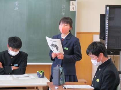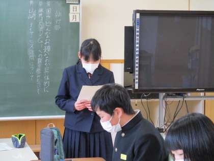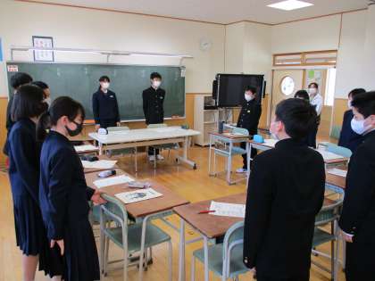 6限 1・2年合同学級討議 公開日 2021/04/22 更新日 2021/04/22 日々の活動から 4月22日(木) 本日、第1回学級討議を行いました。30日に行う生徒総会に向けて、各実践部員がそれぞれの実践部の活動内容や新企画について説明しました。 討議では、2年生が進行を担当しました。質問、修正案、意見を発表する場面では、1先生も2年生も積極的に発表していました。