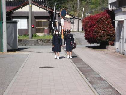今朝の登校風景です。
