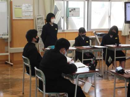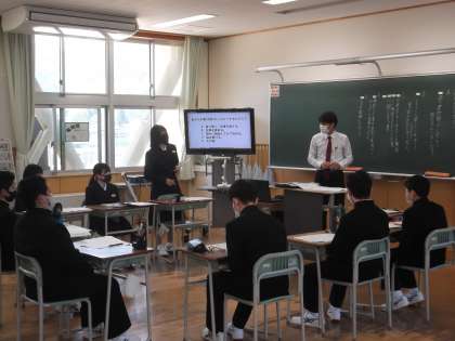 本日1年生の道徳の授業では、3年担任の清崎教諭が授業を行いました。