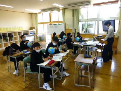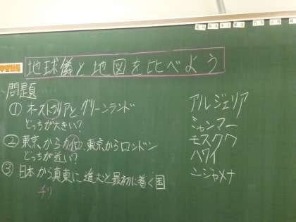 4月23日(金) 1年生の社会は、地図と地球儀について学んでいました。