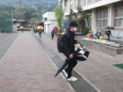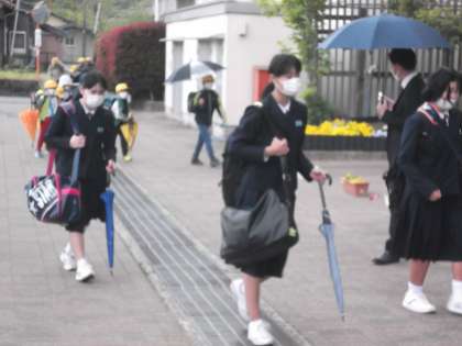 今朝は、時より雨交じりの強い風が吹きましたが、本校生徒は今日も元気に登校してきました。