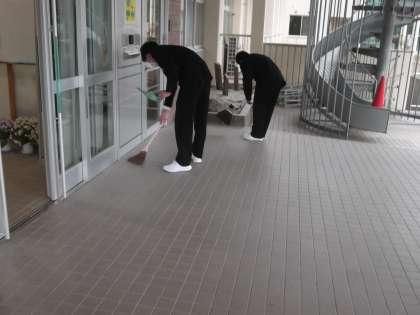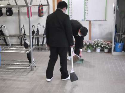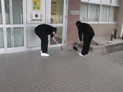 今日は、環境実践部の3年男子が、1年生に朝清掃の活動内容を教えながら活動しました。