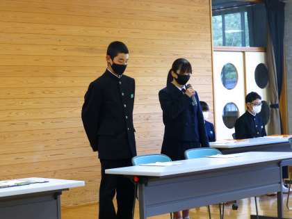 画像上段:「議長選出」 画像中段:「執行部活動計画について生徒会長説明」 画像下段:「執行部への質問」