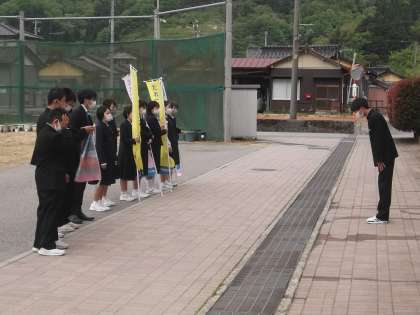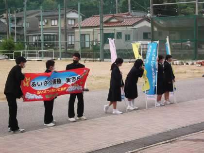 挨拶運動 公開日 2021/05/07 更新日 2021/05/07 日々の活動から 5月7日(金) 今朝は、生徒会執行部による今年度初めての「挨拶運動」を行いました。 前期生徒会執行部は「活気ある学校づくり」に取り組んでいます。