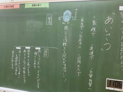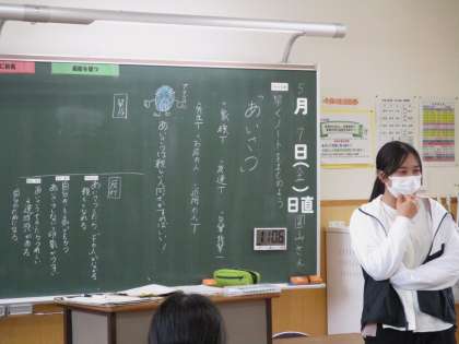 2年3限 道徳 公開日 2021/05/07 更新日 2021/05/07 日々の活動から 5月7日(金)3限 2年生の道徳の授業の様子です。 「あいさつ」について話し合いました。 「心のこもったあいさつと心のこもっていないあいさつを見分けることができますか?」 「分かるときと分からないときがある。」 心のこもった「あいさつ」についてみんなで考えました。