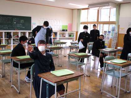 3年生の給食準備の様子です。