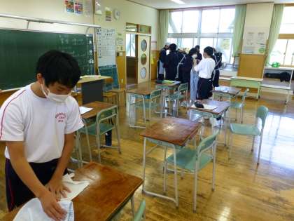 5月11日(火) 1年生は順序よくテキパキと準備していました。