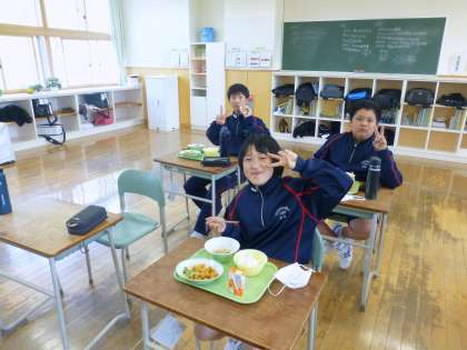 今日もいい笑顔をたくさんいただきました。 放送当番の生徒もいました。
