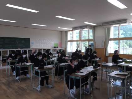 3年6限 英語 公開日 2021/05/11 更新日 2021/05/11 日々の活動から 5月11日(火) 3年生の英語の授業の様子です。 たくさんの生徒が手を挙げて発表し、発表した生徒には拍手をして心温まる授業です。