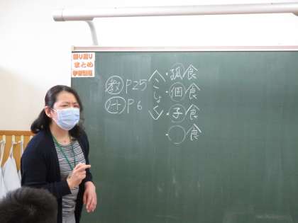 1年2限 家庭科 公開日 2021/05/12 更新日 2021/05/12 日々の活動から 5月12日(水) 1年生の家庭科の授業の様子です。 「食」について学習しています。 こしょく → 個食 孤食 子食 ○食?