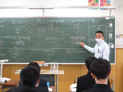 5月12日(水) 1年生の数学の授業の様子です。 さまざまな四則計算の問題に取り組みました。