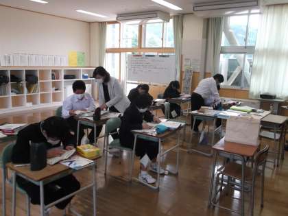 1年4限 国語 公開日 2021/05/13 更新日 2021/05/13 日々の活動から 5月13日(木) 1年生の国語の授業は、漢和辞典を使い「部首」について学習しています。 できるだけたくさんの漢字を覚えてもらいものです。