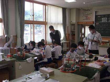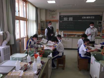 小学校理科 交流事業 公開日 2021/05/13 更新日 2021/05/13 日々の活動から 5月13日(木) 本日、本校理科担当の林教諭が、小学校の理科の授業へティームティーチングを行うために小学校の授業に参加しました。 専門性を生かし、小中連携により児童・生徒の成長を支援していきます。