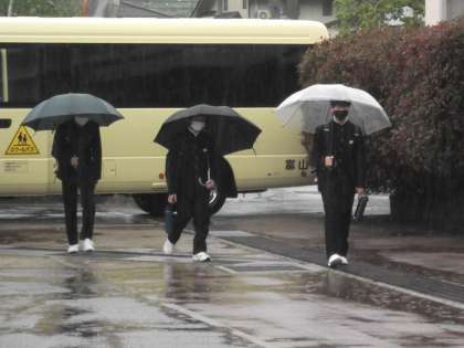 登校風景 公開日 2021/05/17 更新日 2021/05/17 日々の活動から 5月17日(月) 本日の登校風景です。 久しぶりに雨が降り、傘さし登校でした。 中間考査1週間前で今日から部活動停止となります。 荷物も少なく、全体的に身軽な登校でした。