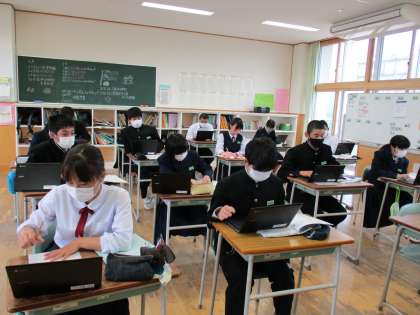 5月17日(月) 3年生の英語の授業の様子です。 クロムブックを使用した授業でした。
