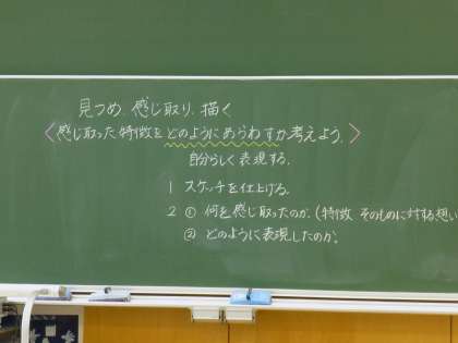 1年生の美術は、「見つめ、感じ取り、描く」がテーマでした。