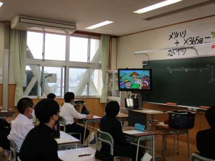 1年1限 「総合的な学習の時間(楡の木タイム)」 公開日 2021/05/19 更新日 2021/05/19 日々の活動から 5月19日(水) 1年生の「総合的な学習の時間(楡の木タイム)」の様子です。 ビデオを見て、SDGsとは何かを学んでいました。