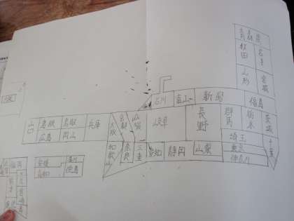 まずノートに自分なりの日本地図をかいて、県名を書いていました。
