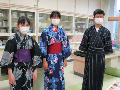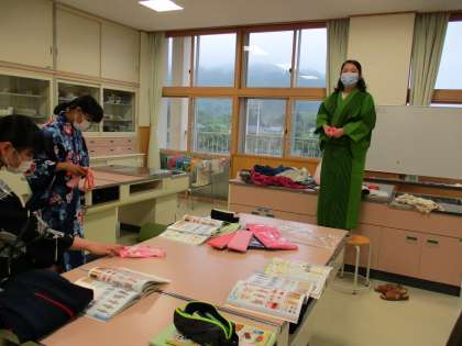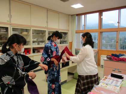 5月19日(水) 2年生の家庭科では、浴衣の着方を学びました。