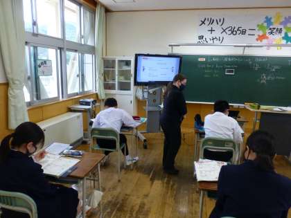 1年1限 英語 公開日 2021/05/20 更新日 2021/05/20 日々の活動から 5月20日(木) 1年生の英語は「Be動詞と一般動詞の違いについて」学習しました。 ALTのエミリー先生に積極的に質問する場面もありました。