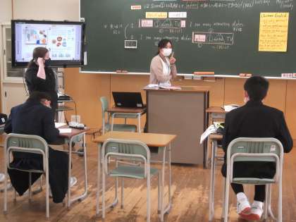 2年2限 英語 公開日 2021/05/20 更新日 2021/05/20 日々の活動から 5月20日(木) 2年生の英語の授業の様子です。 今日はALTの先生と学びサポート講師の先生と一緒に授業を行いました。