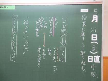 5月21日(金) 2年生の道徳の授業の様子です。 イラスト資料を見て、話し合いました。
