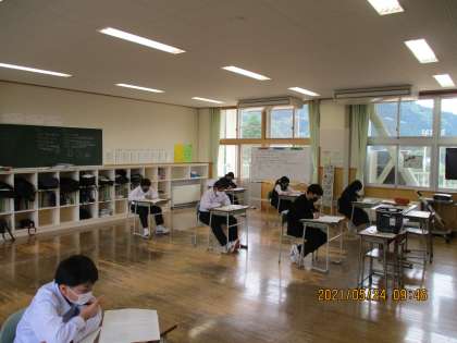 1年2限 中間考査 国語 公開日 2021/05/24 更新日 2021/05/24 日々の活動から 5月24日(月) 本日から中間考査が始まりました。1年生にとっては初めてのことになりますが、落ち着いて取り組んでいました。 学習してきたことを確かめる良い機会とも言えます。 全力でがんばってください。
