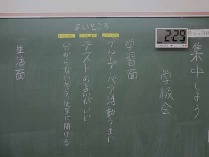 3年6限 学級活動 公開日 2021/05/24 更新日 2021/05/24 日々の活動から 5月24日(月) 3年生の学級活動の様子です。 学級会でクラスのよいところや改善すべきところを話し合いました。