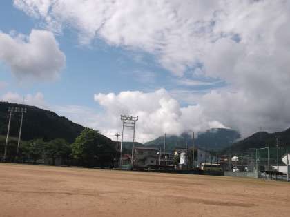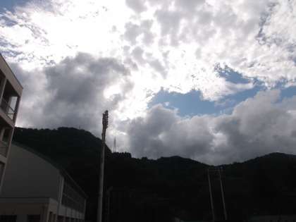 今朝の校舎周辺の空は、厚い雲の隙間から覗く青空で、空に吸い込まれそうな雰囲気でした。