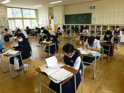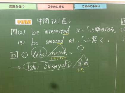 5月25日(火) 1限の中間考査の答案が返却され振り返り学習をしていました。