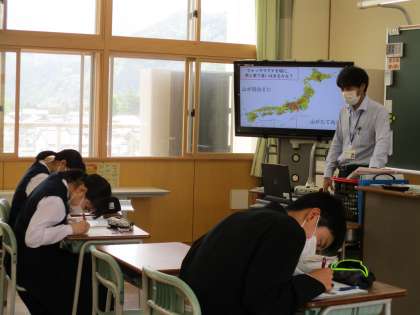 5月26日(水) 社会の授業の様子です。 「日本の地形の特徴を知ろう」が学習課題でした。