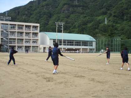 ソフトボール部 公開日 2021/05/26 更新日 2021/05/26 日々の活動から 5月26日(水) 本日のソフトボール部の活動の様子です。 ダッシュ、キャッチボール、素振り、トスバッティング、ボール回し、守備練習を行いました。 守備練習では、自分以外の場所にボールが飛んだときの動き方を確認しました。
