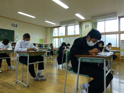 5月27日(木) 3年生の全国学力・学習状況調査の調査用紙の様子です。