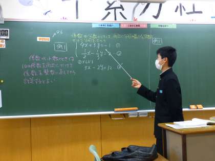5月27日(木) 2年生の数学は、いろいろな連立方程式を解きました。