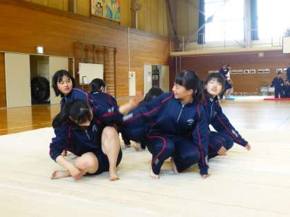 5月27日(木) 3年生の保健体育は、マット運動を行っています。 集団演技の練習をしている様子です。