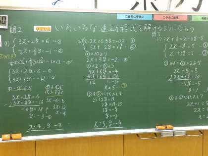 5月28日(金) 数学の授業の様子です。 いろいろな連立方程式に挑戦していました。