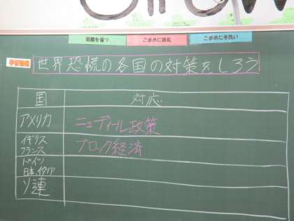 5月28日(金) 3年生の社会の授業の様子です。 「世界恐慌の各国の対策を知ろう」が学習課題でした。