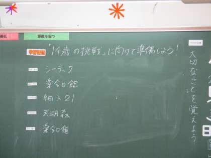 2年6限 「総合的な学習の時間(楡の木タイム)」 公開日 2021/05/28 更新日 2021/05/28 日々の活動から 5月28日(金) 「『14歳の挑戦』に向けて準備しよう!」が学習課題でした。