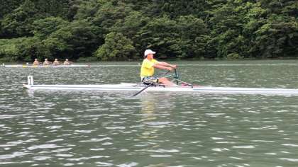 今日は県高校総体が神通川で行われていたため、実際のコースを使ってタイムトライアルを行いました。