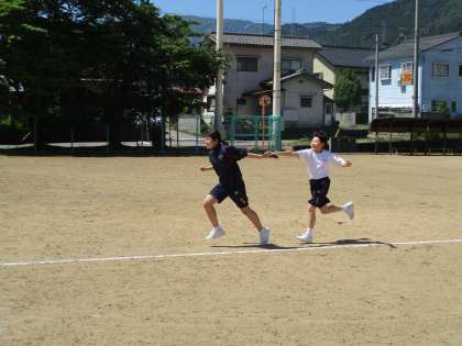 1年2限 保健体育 公開日 2021/05/31 更新日 2021/05/31 日々の活動から 5月31日(月) 1年生の体育の授業の様子です。 確実にバトンパスを行うために、様々な練習を工夫し、本番ではスムーズなバトンパスができていました。