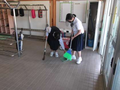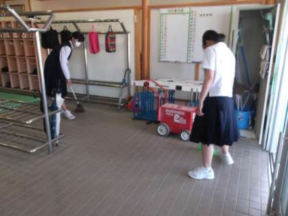 今朝は、2年生と1年生の女子生徒が生徒玄関掃除をしてくれました。