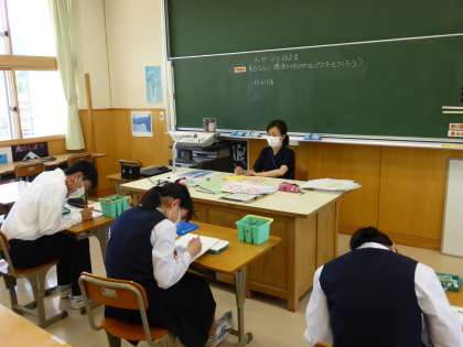 2年4限 美術 公開日 2021/06/01 更新日 2021/06/01 日々の活動から 6月1日(火) 「身近な人に環境保全を呼びかけるポスターをつくろう」が学習課題でした。 生徒たちは丁寧に色を塗っていました。