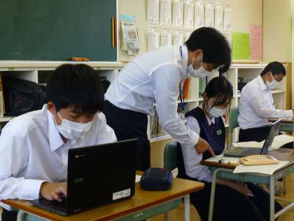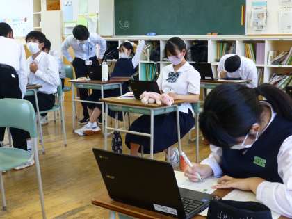3年5限 「総合的な学習の時間(楡の木タイム)」 公開日 2021/06/01 更新日 2021/06/01 日々の活動から 6月1日(火) 3年生の「総合的な学習の時間(楡の木タイム)」は、SDGsについてタブレットを使って調べました。